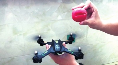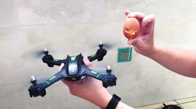 无人机螺旋桨把鸡蛋打碎